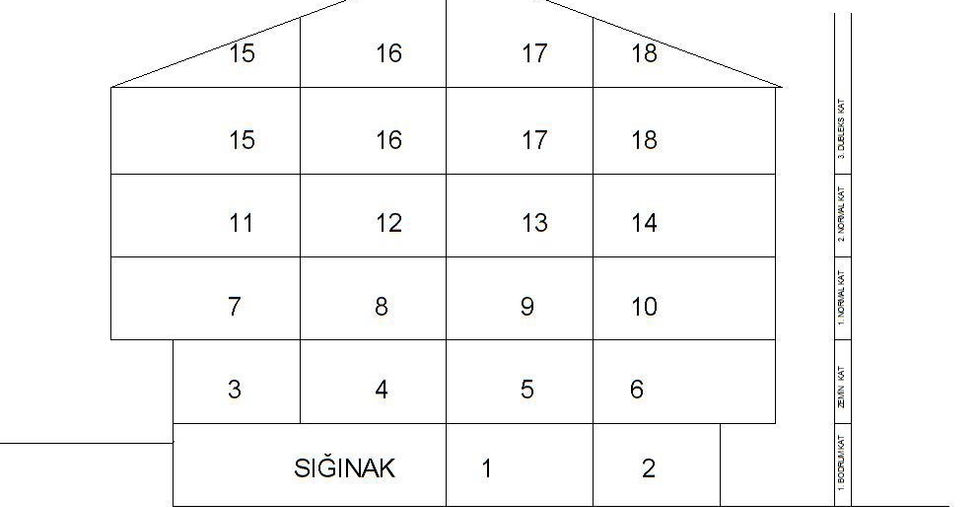 * 2 Bahçe Katı, 4 Giriş kat, 8 Ara kat, 4 Dublex Daire
